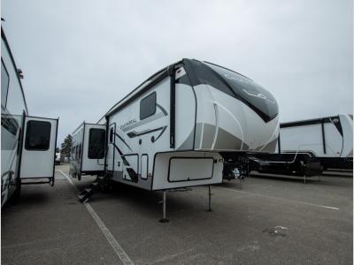 Sleeps 4 Slides 3 Length 37 ft Ext Width 8 ft Ext Height 12 ft 10 in Interior Color Linen, Carbon Hitch Weight 1880 lbs GVWR 13500 lbs Dry Weight 10519 lbs Cargo Capacity 2981 lbs Fresh Water Capacity 48 gals Grey Water Capacity 90 gals Black Water Capacity 45 gals Tire Size 16" Available Beds King Refrigerator Type Side by Side Stainless Glass 12V Refrigerator Size 16 cu ft Cooktop Burners 3 Number of Awnings 1 Water Heater Type On Demand AC BTU 27000 btu TV Info LR 50" 4K Smart LED TV Awning Info 16' Electric with LED Light Strip Axle Count 2 Washer/Dryer Available Yes Shower Type Standard Electrical Service 50 amp Similar Fifth Wheel Floorplans