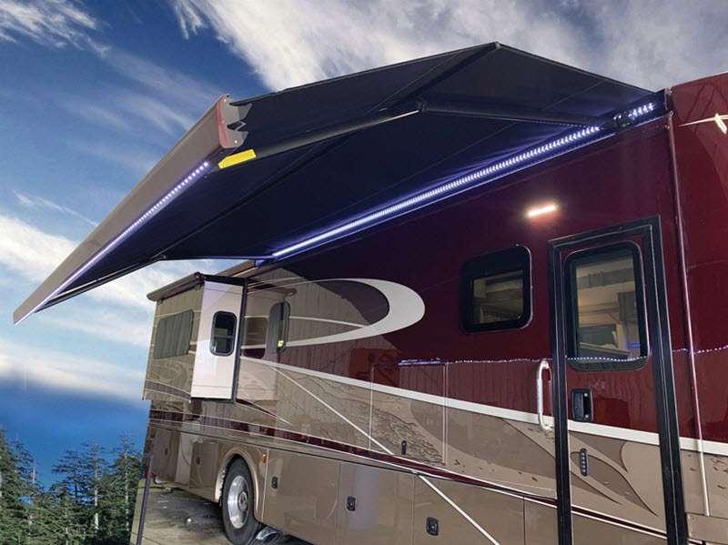 - Roof-Mounted, Integrated Armless Patio Awning with LED Lighting and Wind Sensor