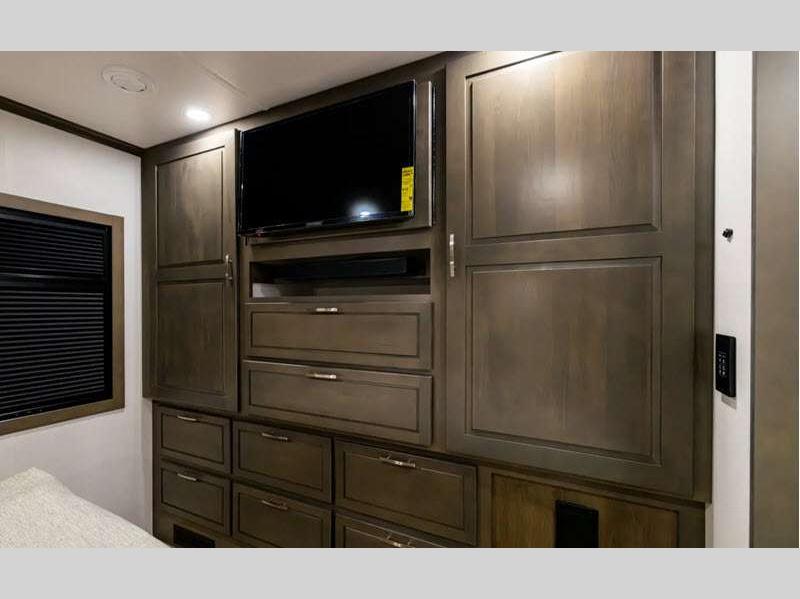 - Remote Locking System for Exterior Storage Doors & Entry Door (Starting at DXC007159)Exterior Wall-Mounted Entertainment Center with 40" LED Smart TV and Sound Bar