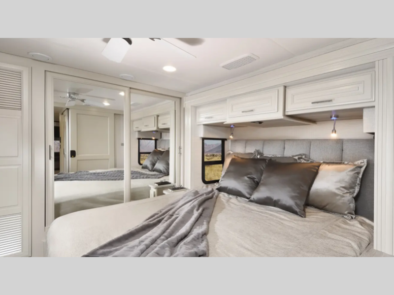 - Individual reading lights in overhead above bed