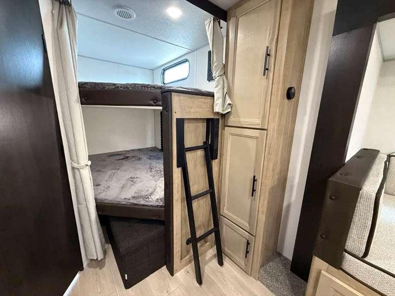 Sleeps 9 Slides 1 Length 31 ft 9 in Ext Width 8 ft Ext Height 10 ft 8 in Int Height 0 ft Hitch Weight 940 lbs GVWR 7940 lbs Dry Weight 6507 lbs Cargo Capacity 1433 lbs Fresh Water Capacity 52 gals Grey Water Capacity 38 gals Black Water Capacity 38 gals Furnace BTU 20000 btu Number Of Bunks 2 Available Beds RV King Refrigerator Type 12V Cooktop Burners 3 Number of Awnings 1 Water Heater Type Tankless AC BTU 15000 btu Cargo Deck Size 0 ft Awning Info 15' Full Length Power w/LED Light Strip Axle Count 2 Shower Type Tub/Shower Combo Solar Wattage 200 watts Similar Floorplans
