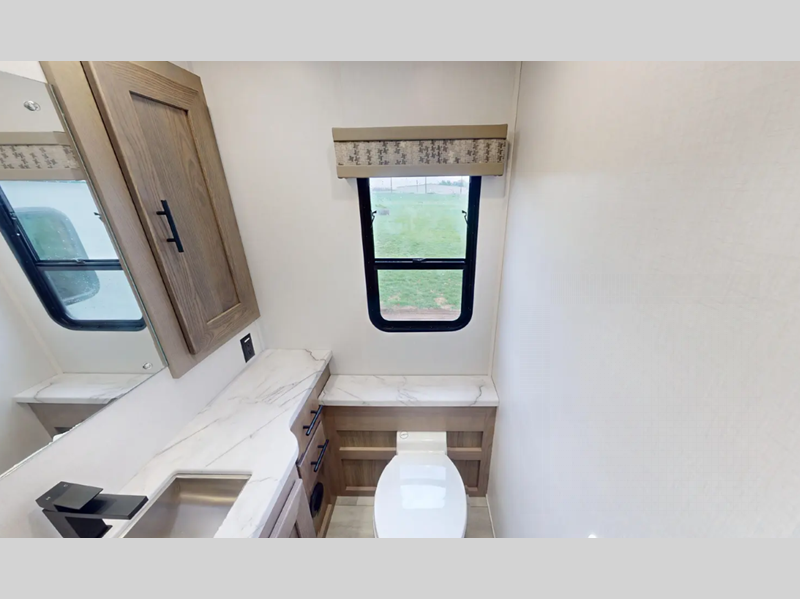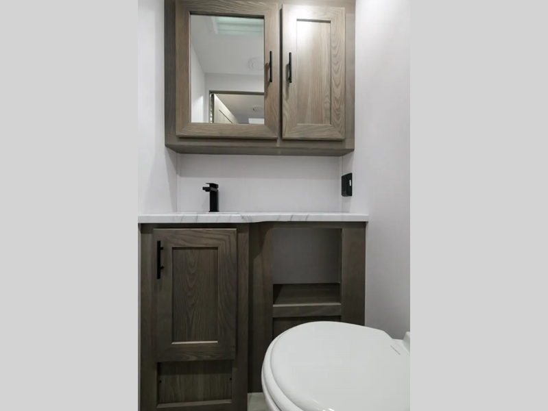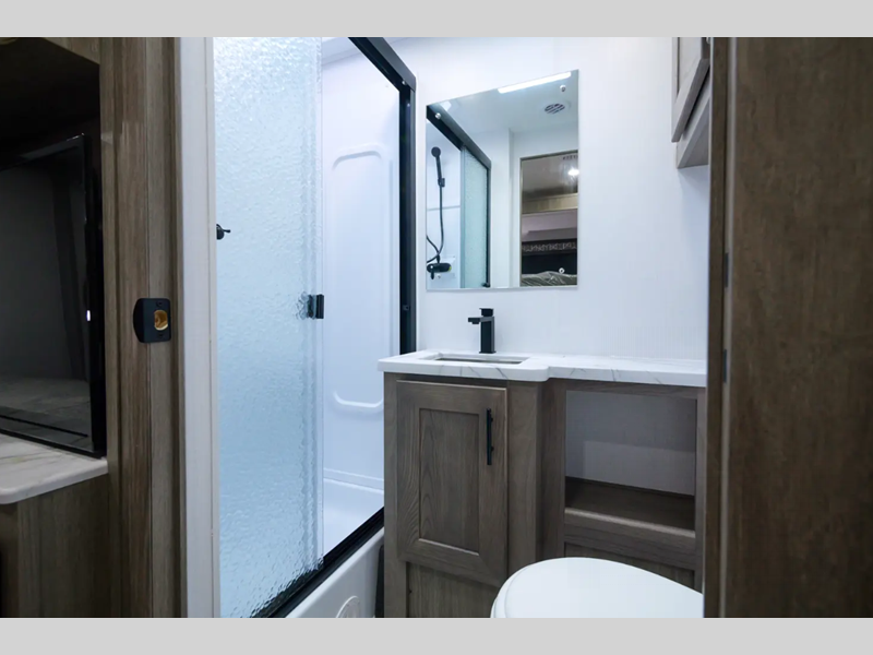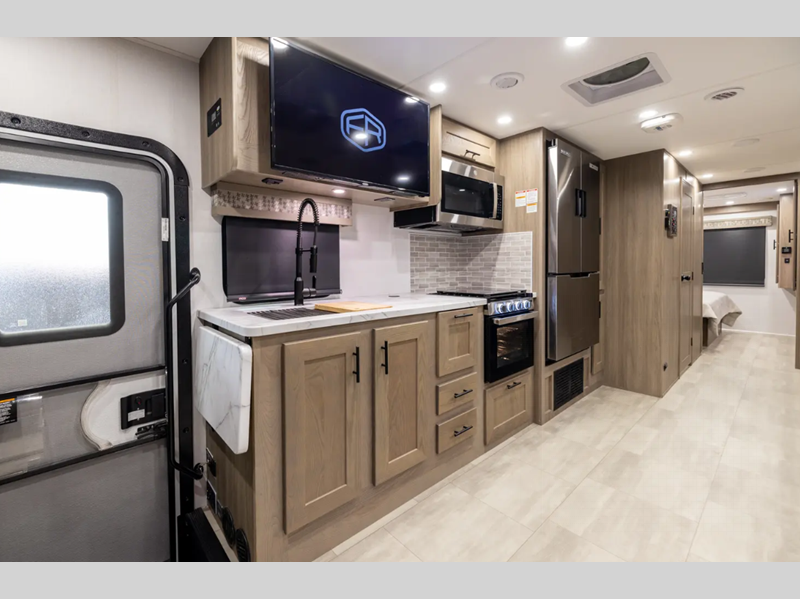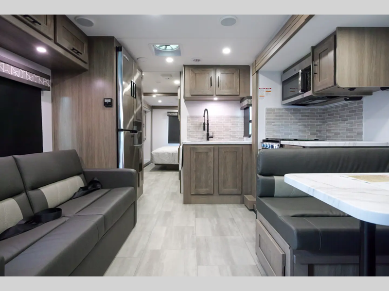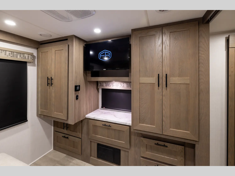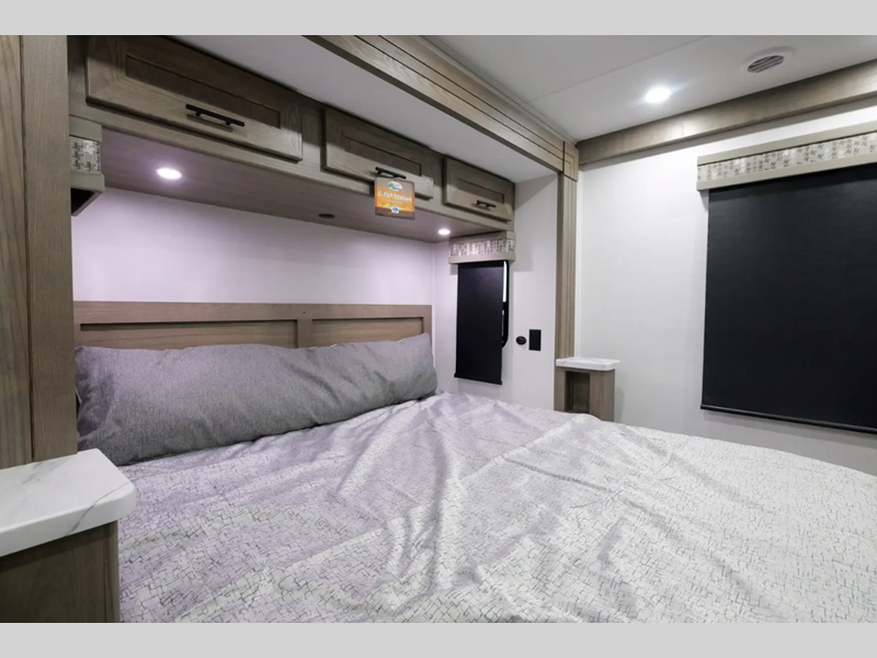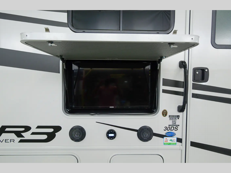 Each FR3 is built on a Ford F53 chassis with a 7.3L V8 six-speed TorqShift transmission giving you 335HP to power your many adventures. A few other outstanding features include the body-mounted side and rearview camera package, a one-piece fiberglass roof, a grey Rotocast storage boxes with drains, and a 5,000-lb. tow hitch. The interior is just as impressive with 84" interior ceilings, IVC residential vinyl flooring, custom countertops with flip-up and pullout countertop extensions, and a residential microwave to mention a few highlights.