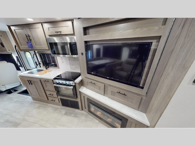 Sleeps 3 Slides 3 Length 37 ft 7 in Ext Width 8 ft 5 in Ext Height 12 ft 6 in Int Height 7 ft Interior Color Mink, Storm Exterior Color Full Body Paint Options; Slate, Inigo Kass Hitch Weight 5000 lbs GVWR 24000 lbs Fresh Water Capacity 73 gals Grey Water Capacity 52 gals Black Water Capacity 52 gals Tire Size 22.5" Furnace BTU 35000 btu Generator 6.0kW NPS Yamaha Fuel Type Gas Engine 7.3L V8 Chassis Ford F-53 Horsepower 335 hp Fuel Capacity 80 gals Wheelbase 252 in Number Of Bunks 1 Available Beds King Torque 468 ft-lb Refrigerator Type Stainless Steel 12V Refrigerator Size 15 cu ft Cooktop Burners 3 Shower Size 36" x 30" Axle Weight Front 9000 lbs Axle Weight Rear 15500 lbs Water Heater Capacity 10 gal Water Heater Type Gas/Electric AC BTU 30000 btu TV Info LR 40" 12V TV, BR 32" LED 12V TV, Ext. TV Washer/Dryer Available Yes Gross Combined Weight 30000 lbs Shower Type Standard Electrical Service 50 amp Similar Floorplans