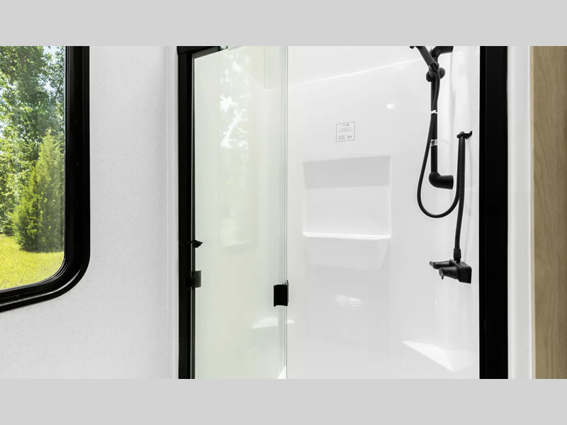 It will be so easy to enjoy extended stays with a spacious shower, solid surface countertops, a stainless steel kitchen package, plus washer and dryer prep! A tankless water heater will provide convenience each day, and the dual ducted 15k BTU A/C units will help keep you comfortable. You'll find many hassle-free features outside as well, such as an electric awning with an LED light strip, a folding grab handle, two 30 lb. LP tanks, and more!