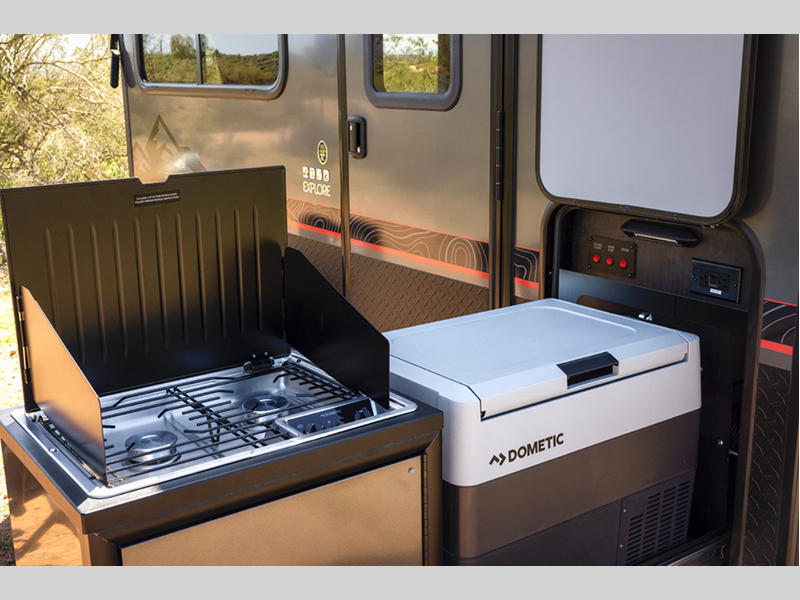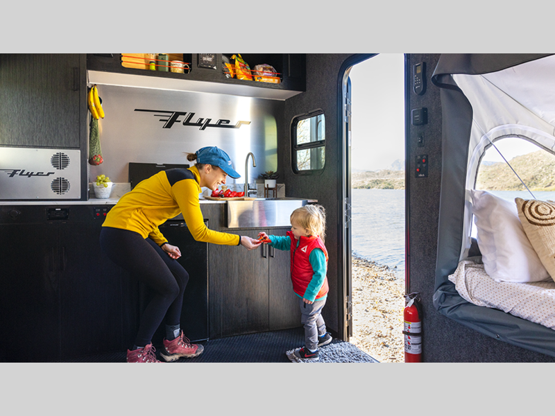 You will have five unique, adventure-ready floorplans to choose from, all with a rugged design to get you off the beaten path. Each model includes plenty of storage spaces for your gear, USB ports and 120V outlets, and a 2" receiver rated for 175 lbs. to bring along bikes. There are a variety of options that can be added to further customize your Flyer, and the optional Adventure Package can be added to the Pursue and Explorer models that includes off-road tires, a slide out kitchen, a roof rack, and more!