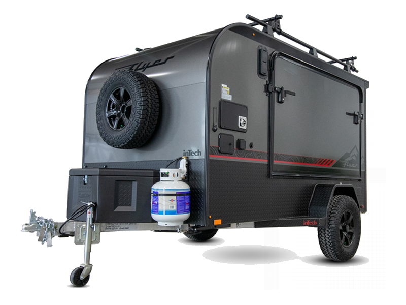 The Flyer travel trailers and toy hauler expandables by inTech RV are ready for adventure when you are! These rugged units provide a versatile interior with convenient amenities and are ultra durable with an all-aluminum, all-tube, fully welded cage frame.