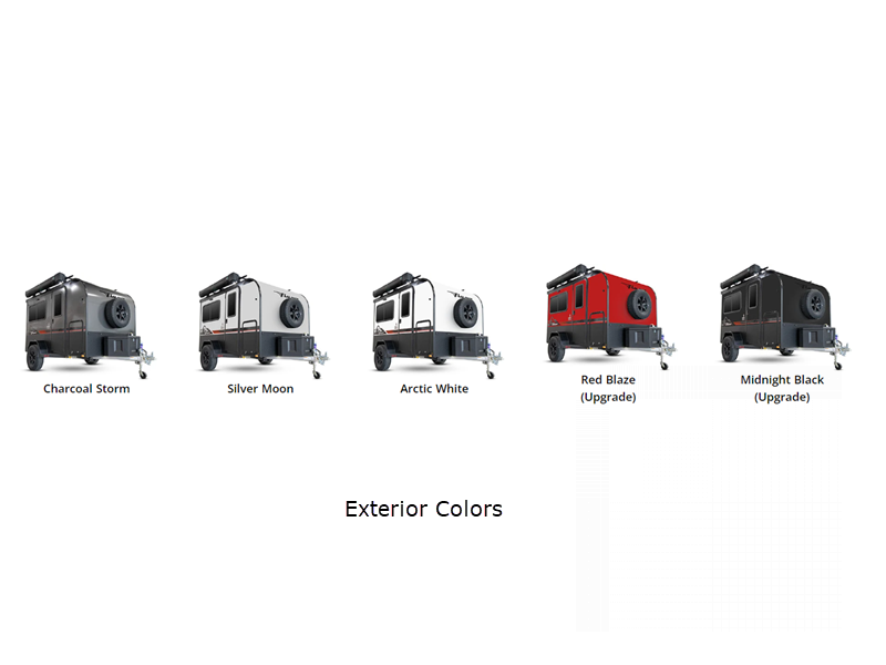 Sleeps 2 Length 13 ft 9 in Ext Width 7 ft 8 in Ext Height 7 ft 9 in Int Height 5 ft 6 in Exterior Color Charcoal Storm, Silver Moon, Arctic White, Red Blaze (Upgrade), Midnight Black (Upgrade) Hitch Weight 485 lbs GVWR 2990 lbs Dry Weight 2110 lbs Cargo Capacity 1410 lbs Tire Size ST235/75R15 Available Beds Full Tent Bed Garage Size 8 ft 1 in LP Tank Capacity 20 lbs AC BTU 11000 btu Axle Count 1 Number of LP Tanks 1 Electrical Service 45 amp Similar Floorplans