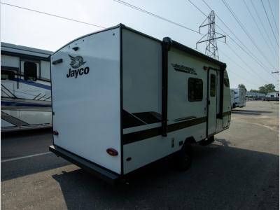 The Jay Feather Air SL travel trailer by Jayco is affordable, convenient, and lightweight for an easier tow! A Magnum Truss roof system and fully integrated A-frame provide a strong foundation to the trailer, plus there are galvanized-steel, impact resistant wheel wells for added protection. Some of the exterior conveniences you'll find include a front tongue jack and stabilizer jacks, roof mount solar prep, an exterior porch light, and G20 dark tinted privacy windows. Head inside to enjoy solid hardwood cabinet doors, residential-style kitchen countertops, a marine-grade toilet with foot flush, and vinyl flooring throughout that will be easy to keep clean. This super lite travel trailer is the perfect choice for rookie RVers and seasoned campers alike!