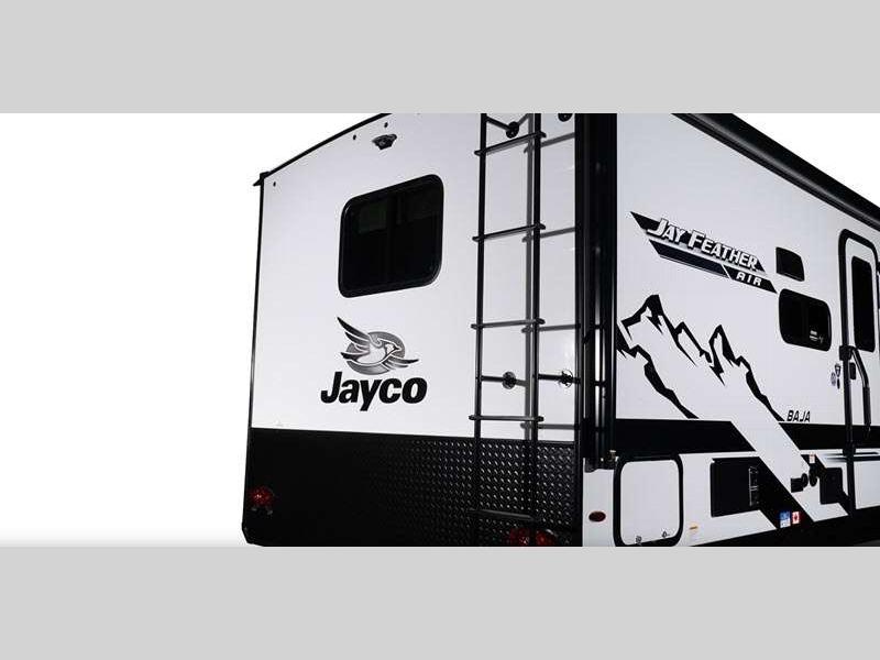 Jayco Jay Feather Air travel trailer 18FBS highlights: Full Rear Bath Exterior ... more about Jay Feather Air 18FBS