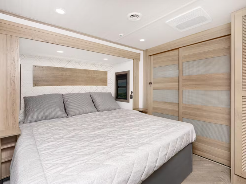 - Rear-ramp patio w/ electric awning & side-entry steps (optional)