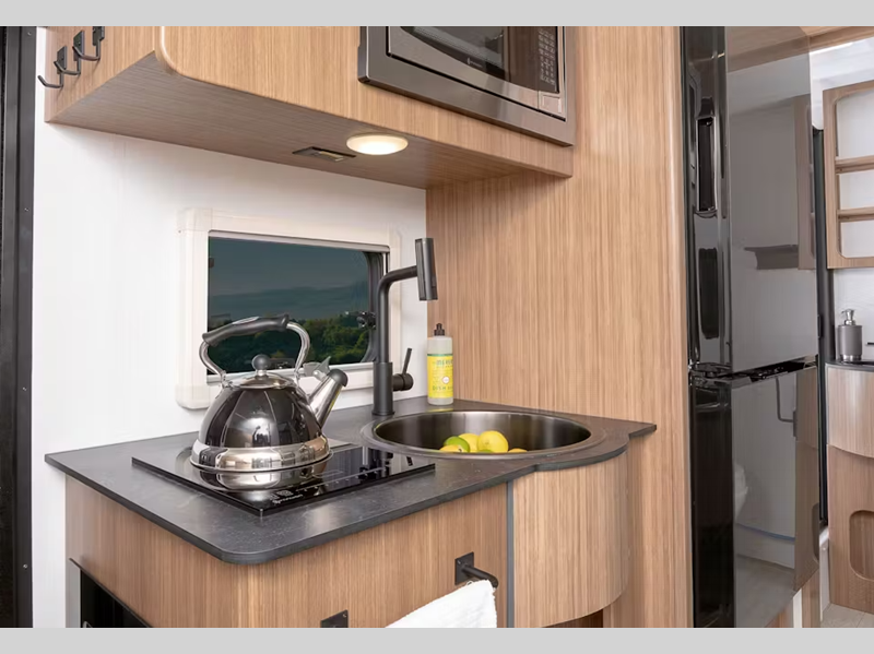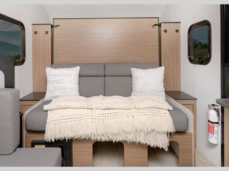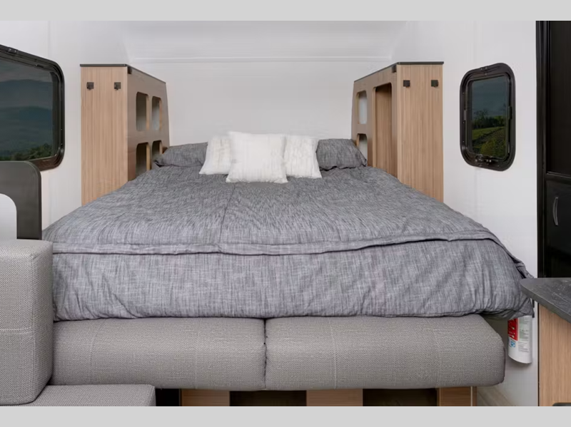 The ergonomically designed single-axle will make towing easier than ever, and it's unique exterior is sure to turn heads as you travel to your destination. There is an exclusive automotive-finished aluminum exterior, a 100% composite floor, and a one-piece heated and enclosed underbelly to ensure years of use. Inside, you'll be met with blackout night shades, solid surface countertops, bedside outlets, and an upgraded Oxygenics Fury showerhead to name a few comforts.