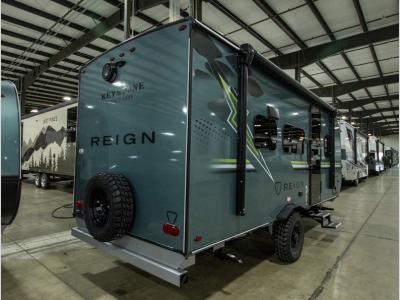 Keystone introduces the new Reign travel trailer, offering premium features and ample storage space for all your camp necessities!