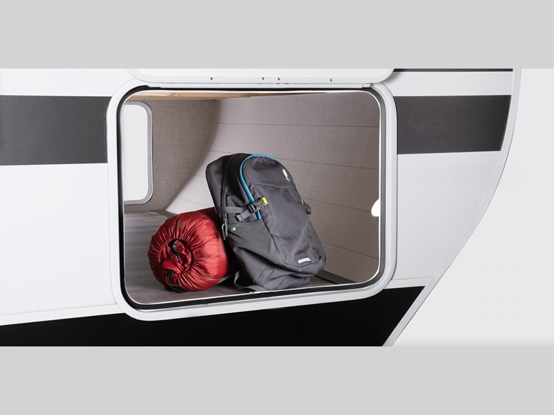 - Painted fiberglass front cap with LED lighting and automotive tinted window